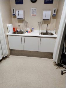 Mobiliario Clínico de Alta Resistencia y Bioseguridad «Diseñamos soluciones a medida para entornos de salud que exigen los más altos estándares. Este mueble bajo mesada ha sido fabricado con materiales hidrófugos y terminaciones antibacterianas, integrando perfectamente estaciones de lavado duales con espacio de almacenamiento optimizado. Un diseño funcional que facilita la limpieza y garantiza la durabilidad en áreas de alto tráfico clínico.»
